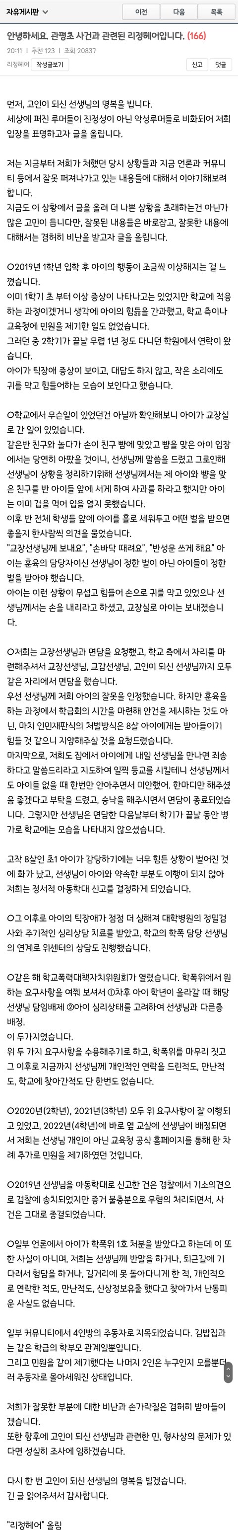 또한 향후에 고인이 되신 선생님과 관련한 민, 형사상의 문제가 있다면 성실히 조사에 임하겠습니다.