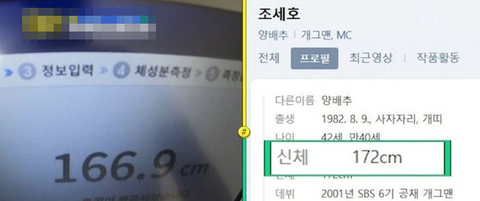 프로필과 실제 키가 5cm 차이나는 조세호...