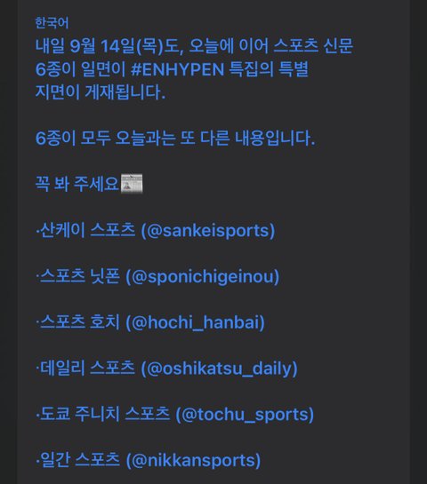 지금 일본 6개 신문사 1면이 엔하이픈이래