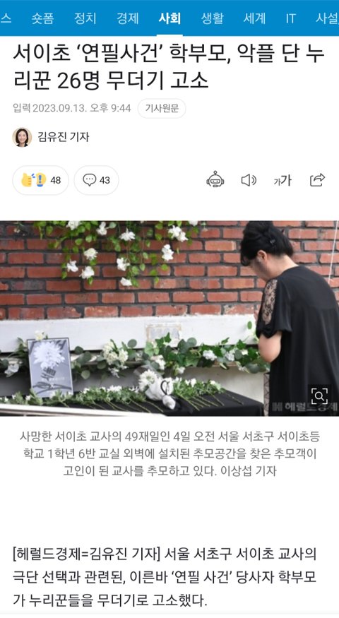 그리고 우리 서이초 당사자 분들의 대처를 한번 볼까요?
