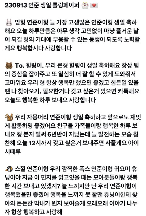 멤버들 생일 롤링페이퍼