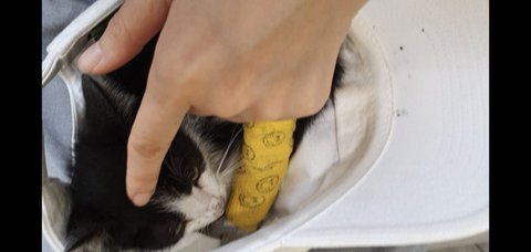 갑자기 길에서 델꼬 온 녀석이라 캐리어도 없이 손에 안고 있었는데 사람품이 처음일텐데도 발길질 한번, 야옹 소리 한번 안내고 있었다.
