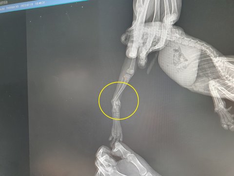 한참 기다리다 사진을 찍어보니 사람으로 치면 발목부분이 완전히 부러졌다고 한다.