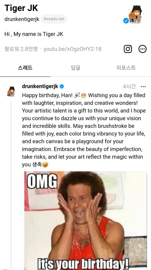 타이거 형님이 한이 생일축하해주셨어