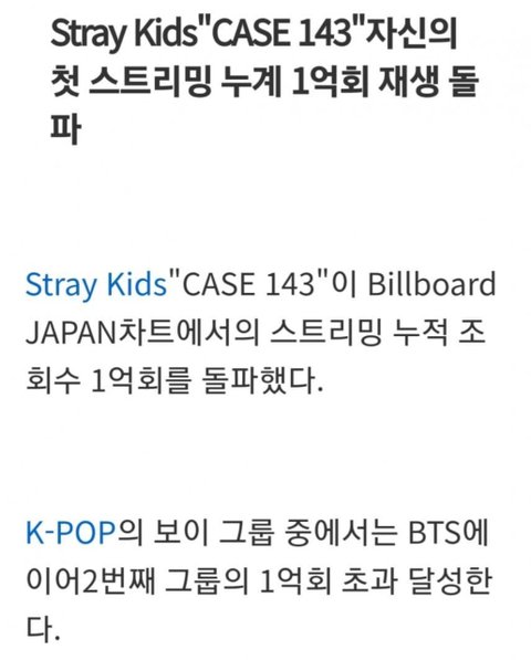 case143 빌보드재팬 스트리밍 1억뷰 돌파