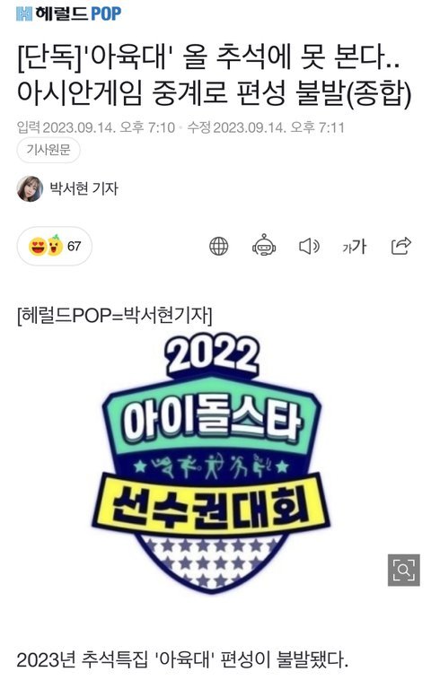 이번 추석 아육대 편성뜸!!!!!!!!!