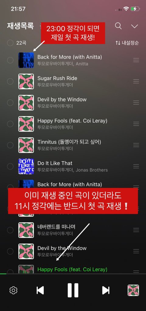 3. 11시에 슴리 첫곡부터 재생이야!!!