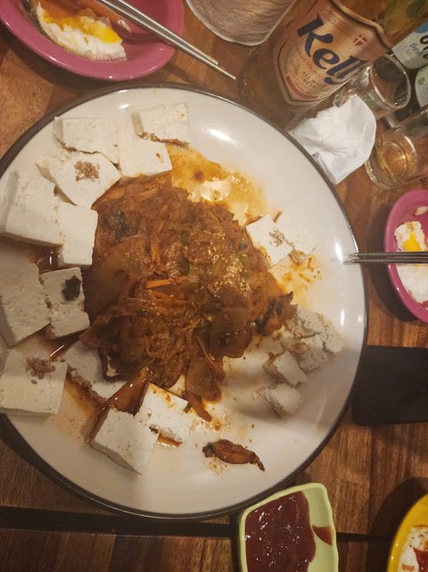 어제 술먹다 주문한 두부김치가 나와서 나오자 마자 먹기편하라고 내가 먹던 젓가락으로 사진처럼 두부를 다 잘랐더니 같이 먹던 친구들이 ㄱㅈㄹ을 하는데 내가 잘못한거임?