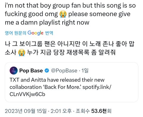 해외는 반응 엄청 좋은데 국내팬들만 너무 찡찡대는 느낌ㅠ 노래 괜찮은데 물론 취향은 안맞을 수 있지만