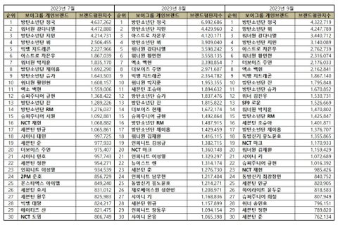 10위 방탄소년단 진