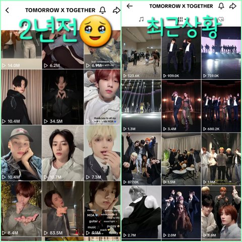 원래 투바투 틱톡 팔로워도 많고 조회수도 엄청 잘나왔는데 요즘 심각하게 조회수가 떨어지고 있어. 너무 심하지 않아?