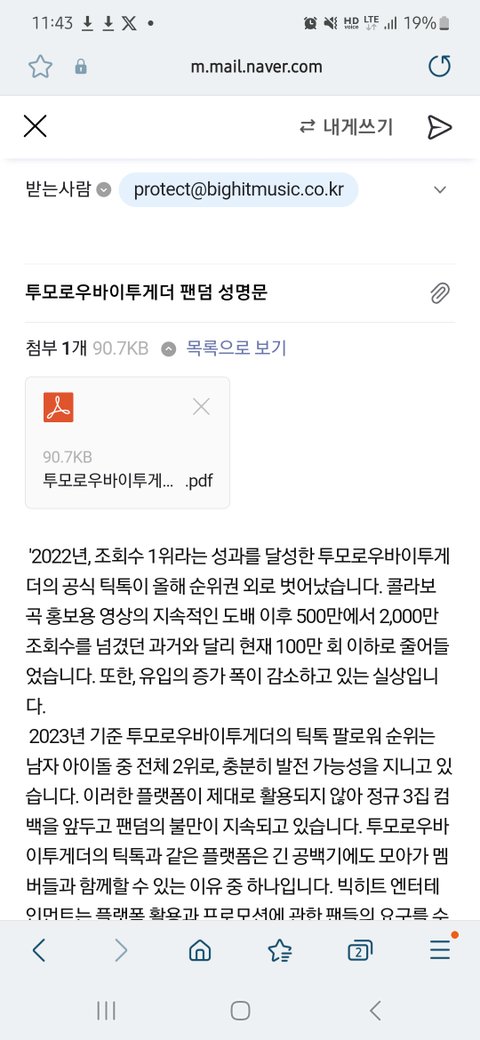 일이 잘 진행되고 있는 것 같아 ㅠㅠ 저녁 일정이 있어서 성명문 작성에 참여는 못했는데 돌아와보니 이렇게 완벽한 성명문이.. 총대 모아 참여해준 모든 모아 지금도 이메일 총공 함께해주고 있는 모아 마음 써준 모아들 모두 정말 너무 ...너무 최고야....