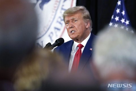 (사진5 설명) (엘크스 로지=AP/뉴시스) 사진은 지난 7월18일 아이오와주 엘크스 로지에서 유세하는 트럼프. 2023.9.14. <아웃 포커스(out of focus) 추천 작품사진>
