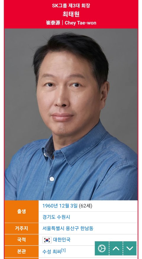 (사진6~7 설명) 최태원(崔泰源, Chey Tae-won) SK그룹 회장 <출처 : 네이버 나무위키>