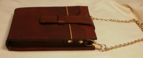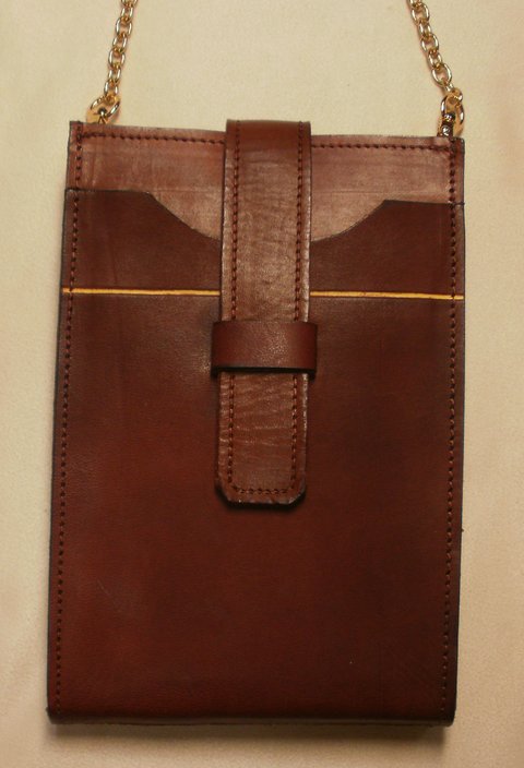 가죽에 천연 염색하여 제작한 휴대폰 수납용 미니 백입니다.(마디샤가죽공예)