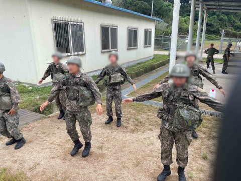허리손 뭔데 입꼬리 살짝 올라간 거 뭔데 훈련병들 왤케 흐뭇한 얼굴로 보고있어 하참나