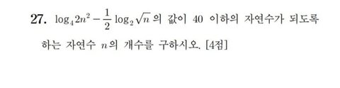 21학년도 수능 가형 27번 문제를 풀어보면 아마도 로그에서 자연수 개수 구하기 문제는 마스터한 수준이 되지 않을까 싶음