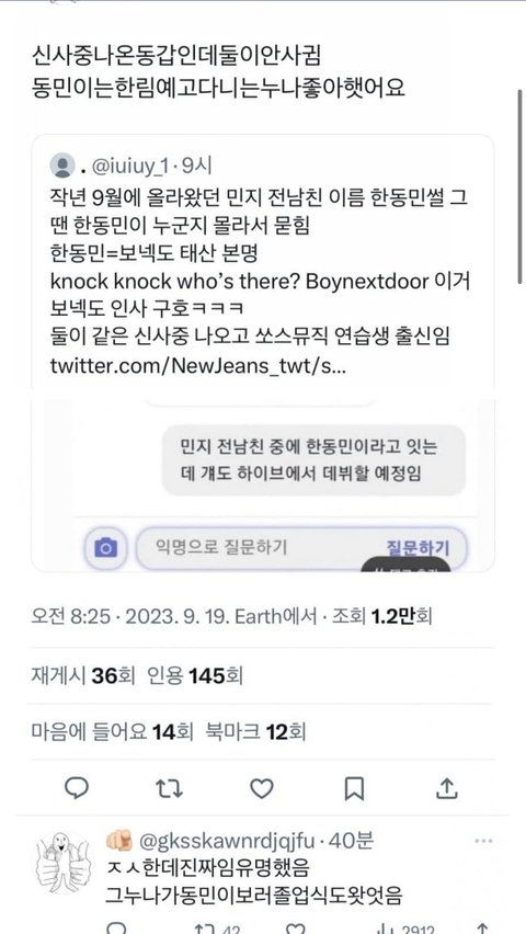 보네도 멤버랑 뉴진스 민지랑 사겼네