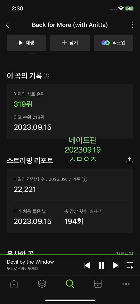 폰 바꾼 뒤로 백포모어 스밍 자꾸 끊겨서 찐모아인증으로 일단 슈러라 스밍횟수도 같이 첨부할게