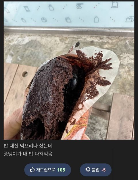 저게 가능할까; 먹다 딴짓한 사이에 들어간거 아님??? 죽어있는것도 아니고 살아있는게 빵 안에 들어가 있다고?