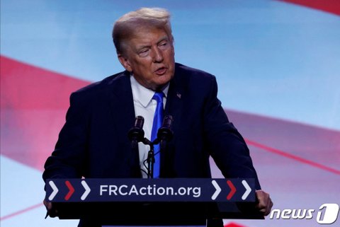 (사진1 설명) 15일(현지시간) 미국 워싱턴에서 도널드 트럼프 전 미국 대통령이 연설하는 모습. 23.09.15 ⓒ 로이터=뉴스1 ⓒ News1 김예슬 기자