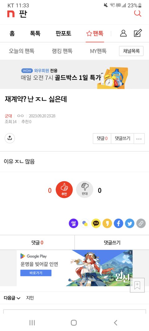 오늘의 팬톡