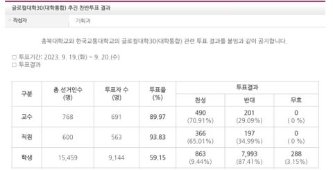 이런 상황에서도 약 8000명의 충북대 학생(87.41%)들은 반대를 하였습니다.