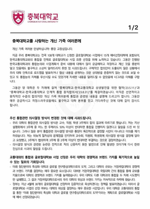 현재 충북대학교는 교통대와 통합을 합의 중입니다.