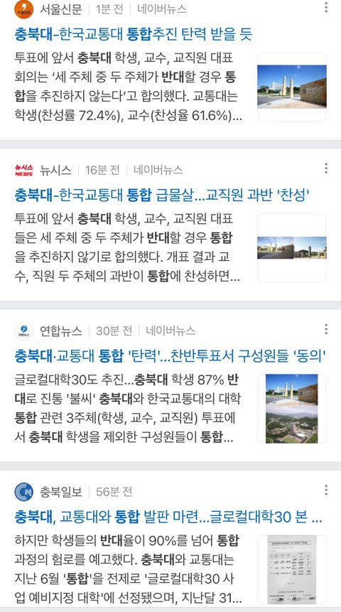 너네들이 말하는 비슷하다는 입결. 알고 말하는거임? 교통대는 상위3과목 산출방식, 충북대는 전과목 산출방식임. 입결 절대 비슷한 학교 아니라고.. 교통대는 통합 찬성이 과반수 이상이고 충북대는 통합 반대가 압도적인데 이걸 봐도 모르겠어? 충북대가 지거국인데 왜 이런 손해를 봐야 하는걸까? 총장부터가 문제임