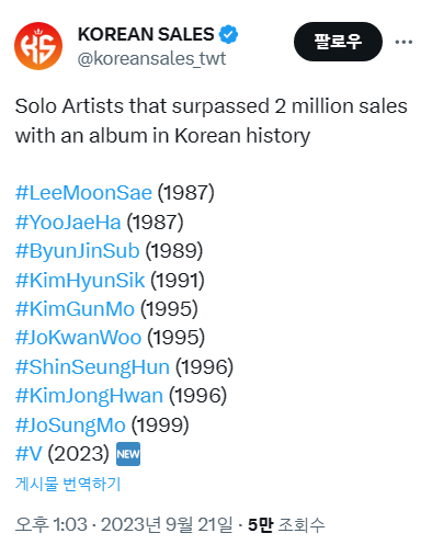 한국 가요계 역사에서 솔로가수 단일 앨범으로 2백만장 넘긴거