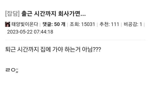 웃자고 쓴거나 희망사항 쓴거겠지? 출퇴근 시간 기준이 회사란걸 모르고 쓴건 아니겠지?