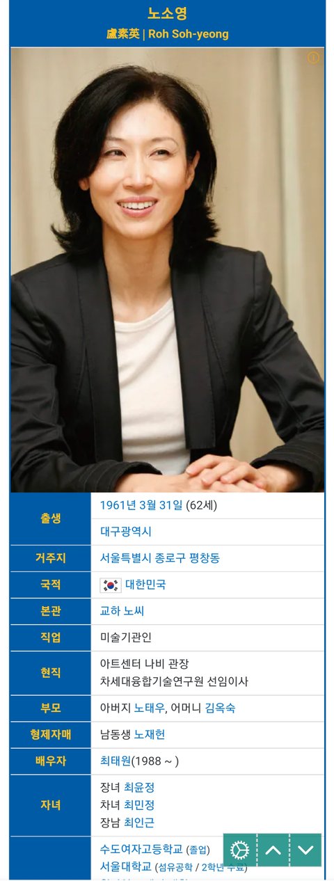 윤석열 대통령께서는 노소영(최민정 전 해군 중위 모친 / 노태우 전 대통령 장녀) 아트센터 나비 관장을 사회부총리(겸 교육부장관)에 임명하지 않는다면, 노태우 전 대통령을 국립서울현충원에 모시는 (안)건을 윤석열정부에서는 기대하기 어렵게 된다는 전략적인 분석결과도 나왔습니다.