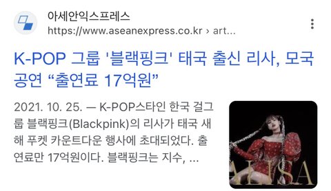 +스케줄 안된다고 거절 & 21년기준 리사 몸값이라 지금 더 오름
