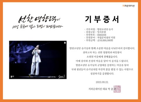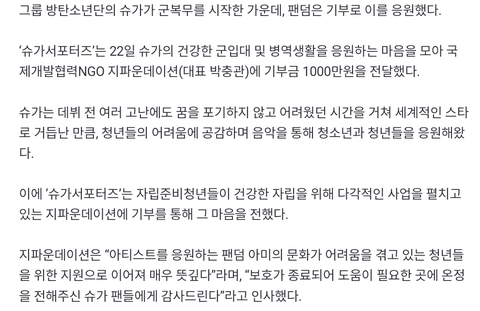 우리팬덤 유니세프도 그렇고 가수영향력따라 좋은 일 많이하는듯