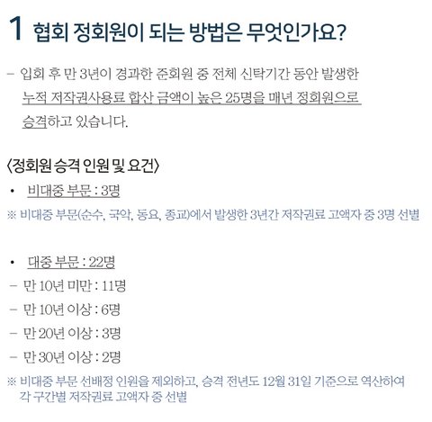 -전년도 12월 31일을 기점으로 역 계산해 3년간의 저작권 사용료를 합산한 금액의 고액자 순으로 결정