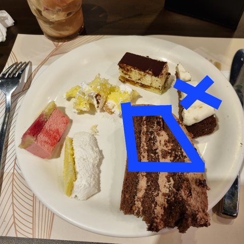 케이크 조각 하나는 못 먹고 큰 조각은 반 남김