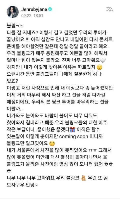 글에 진심이 보인다 제니야 항상 행복해
