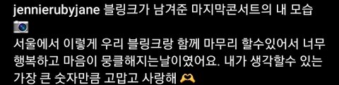 오늘자 제니 인스타 감동 심하다..