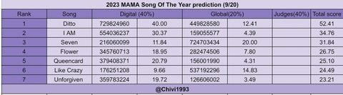 여기에 심사점수 합산하는 건데 세븐이 엄청 잘 나옴 ㅋㅋㅋ 남은 기간 스밍 더 끌어올리면 여러개 수상 가능할지도