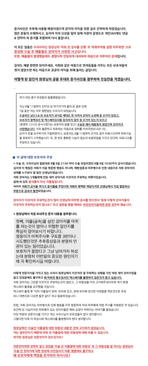대전 동물병원 사고의 보호자입니다. 한번만 읽어주세요. (+추가)