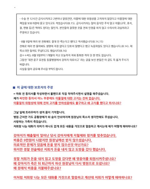 개인 sns들로 연락이 오며 병원 입장글 봤다 하실 말씀 없냐