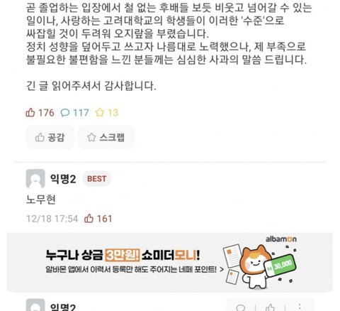 당장 금욜밤에 홍대 대학가 헌포가보셈 진심 서연고생들이 라면없으면 나를먹고가 이노래부름 구라아니고 내생각엔 지잡이나 여기나 에타만봐도 별차이없음 그냥 공부 그 지능 딱하나 차이임 나도 고딩때 판애들처럼 신격화하고 환상 가졌어서 이해는감