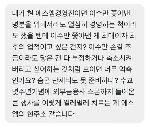 이수만 나간건 좋은데 일처리 ㅈ같이해 이회사는 마음에 드는게 하나도 없어 ㅆㅂ