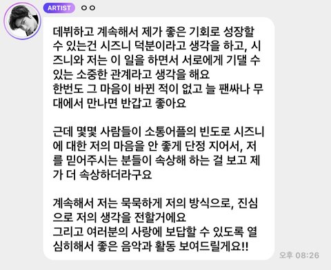 근데 소통때문에 욕먹는걸로 팬들이 속상해하는거 알면서 좀 자주 소통와주면 안되냐... 물론 소통으로만 팬사랑 나타나는건 아니지만 팬사랑의 일부가 소통인것도 맞잖아.. 그냥 비즈니스적으로라도 자주 와주면 안되냐고