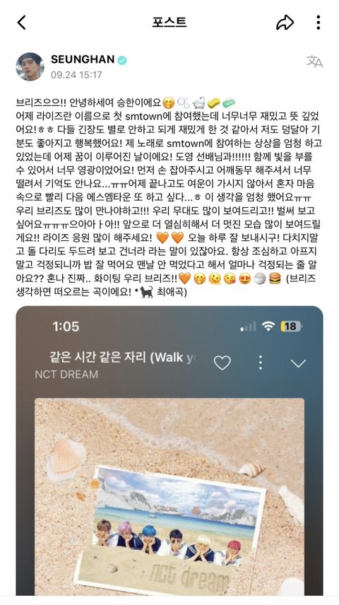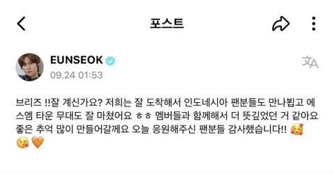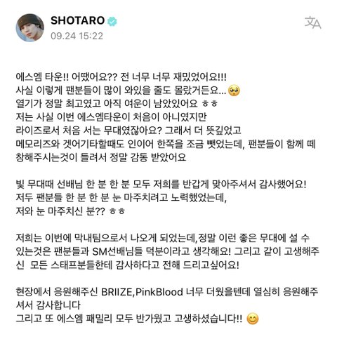 오늘자 라이즈 위버스 글쓴거