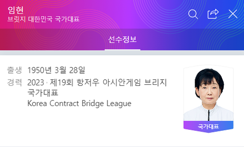 브릿지 임현 선수 (1950년 3월생으로 올해 73세)