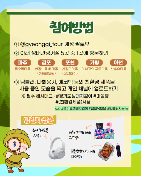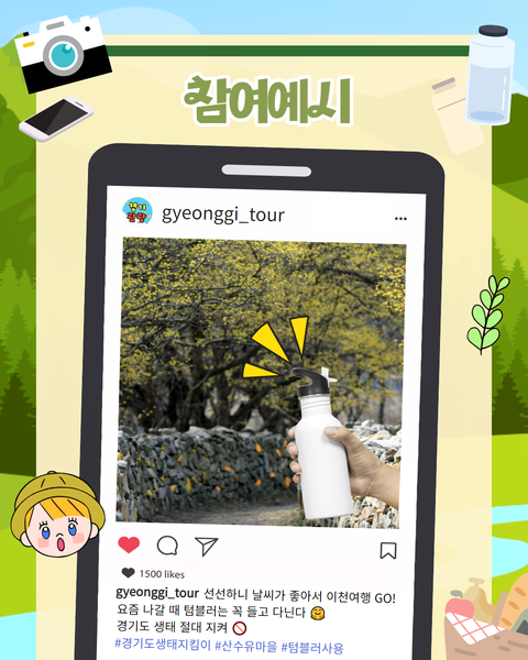 4. 필수 해시태그 : #경기도생태지킴이#마을명#제품 ex) #경기도생태지킴이#질오목마을#텀블러사용 등