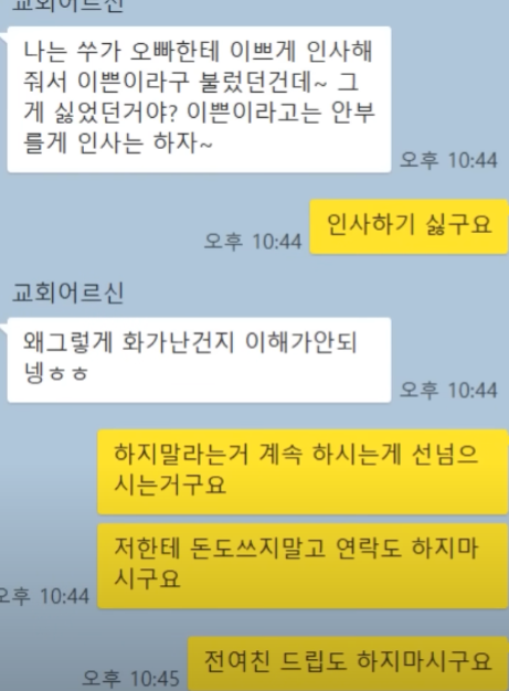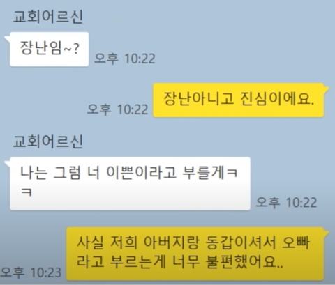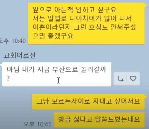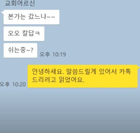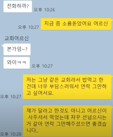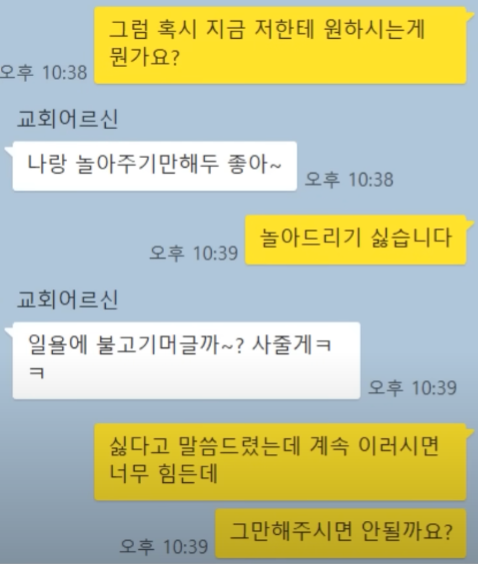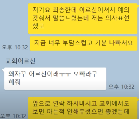 스무살인데 40대 교회아저씨가 선을 넘어요.