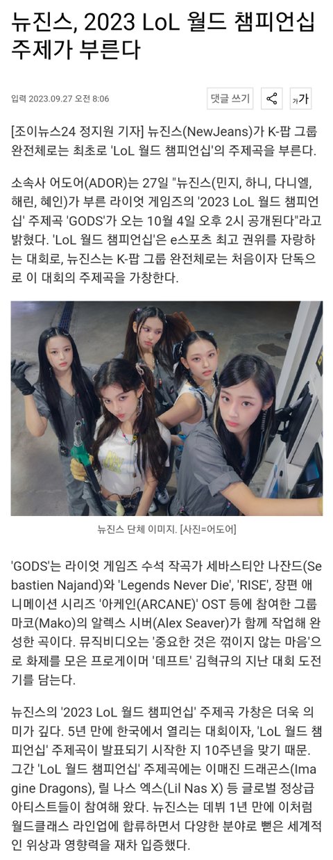 올해 한국에서 열리는 e스포츠 게임 리그오브레전드(롤)의