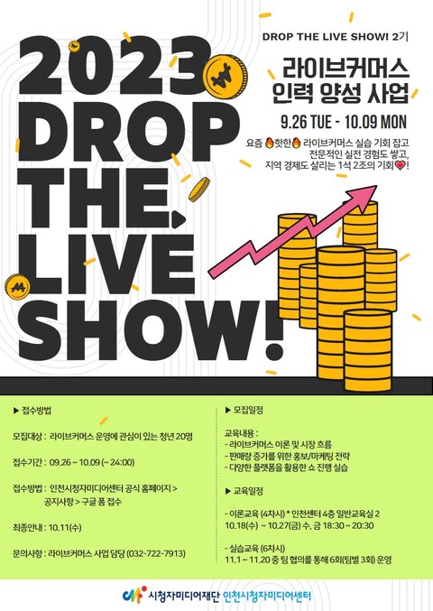 전문 교육을 통해 지역 소상공인의 상품을 직접 판매하는 실무인력 양성 프로젝트 「Drop the Live Show!」 참여자를 모집합니다. (~10.9)